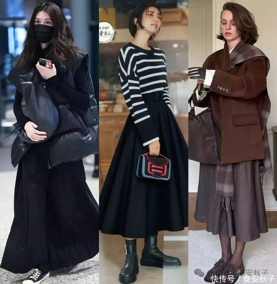 它不仅能很好地遮挡住双腿上的肉肉,又能借助步伐摆动时裙摆荡开的涟漪,来化解掉羽绒服或皮毛外套的厚重感,遮肉又优雅显瘦。