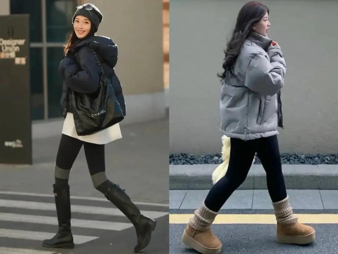 除非你选择“长款”的羽绒服和大衣,裹起来穿,只是露出一小截小腿可能还有可行性。