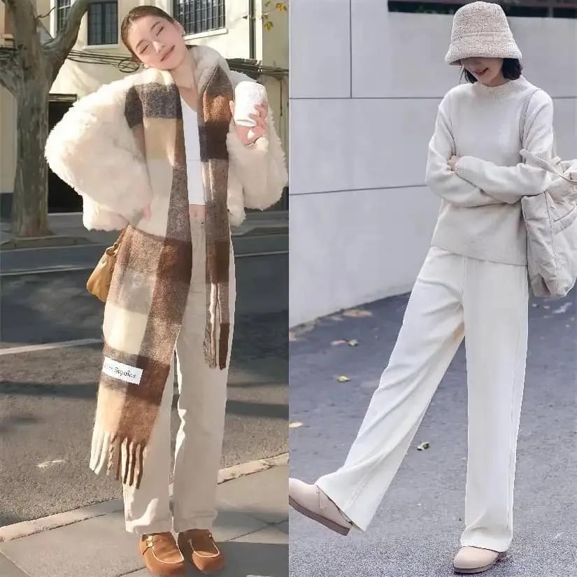 为何推荐你选择白色的阔腿裤呢?在这个寒冷的冬天。如果穿黑色的阔腿裤,你的上衣配色不对,会使得造型变得枯燥沉闷。