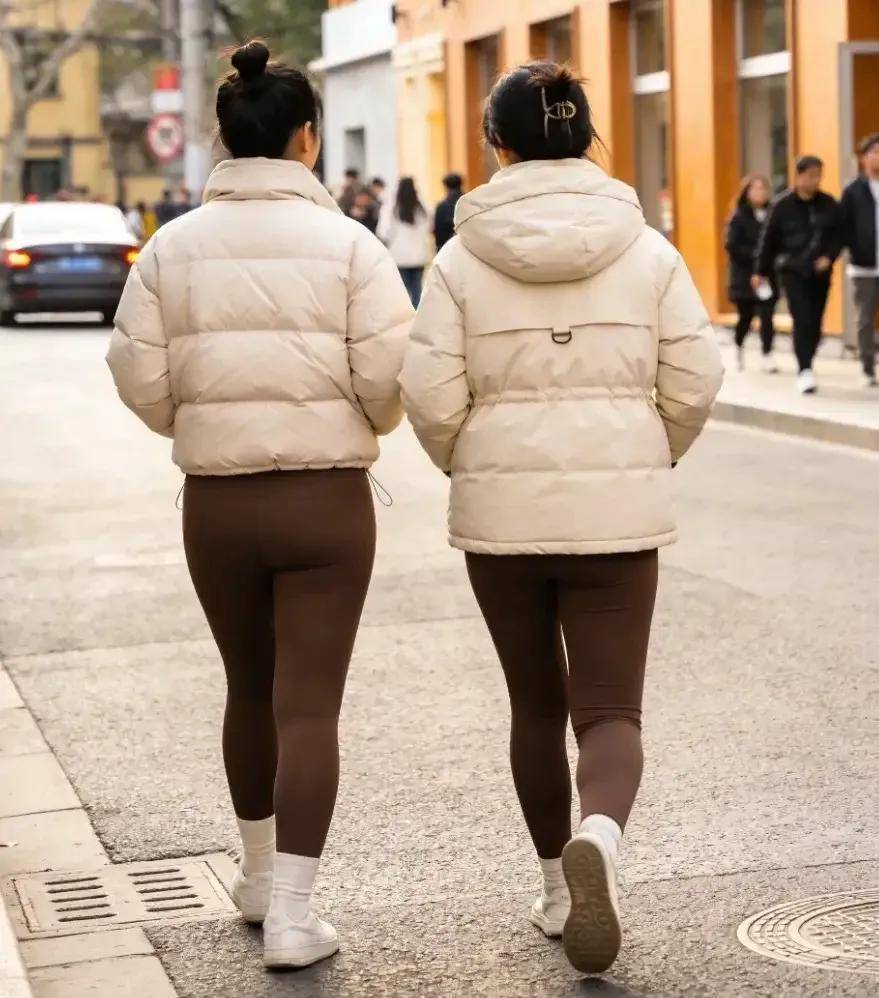 无痕裤款式很紧身,直接贴的肌肤,对于腿型的要求极高,如果没有高挑纤瘦的身材比例,不建议你尝试,“想象中”可能会像上面左边的这位时尚达人,用黑色羽绒服内搭白色长款打底衫和一条黑色无痕裤,脚穿中筒靴,走起路来又飒又美,活力感满满,呈现自己的大长腿。